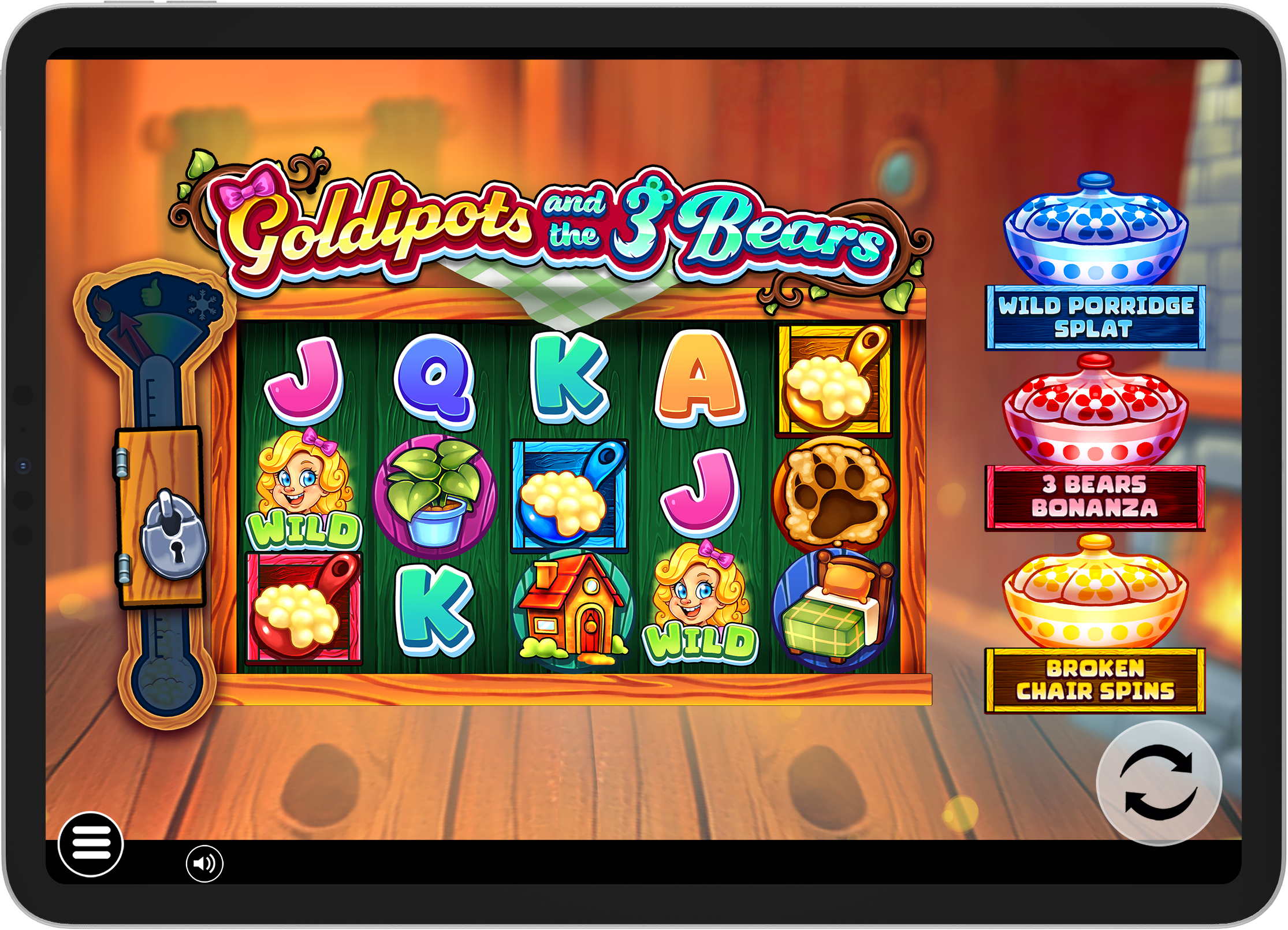 Who’s been sitting in my chair? Who’s been spinning my wins? Who’s been eating my Porridge prizes! Sticky Porridge WILDs, Broken Chair multipliers, Goldipots and the 3 Bears has it all! Fill up the Porridge pots to overflowing and activate any one of 3 ‘Goldilicious’ features!