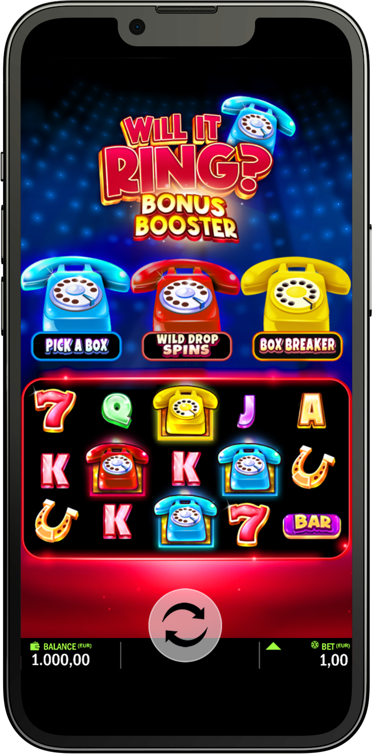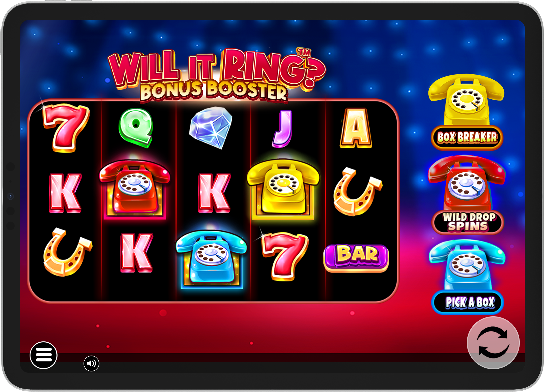 The phones are ringing again, and this time, they’re offering Boosted prizes in our new sequel: Will It Ring? Bonus Booster. With every spin, you could activate one of the 3 Telephone Bonuses which will trigger any of Box Breaker, Wild Drop Spins or Pick-A-Box. But wait - before you play any feature: Choose from 1 of 6 mystery boxes. Find the Boosted one and your feature bonus is enhanced to give you a truly Will-It-Ring chance at some huge wins!